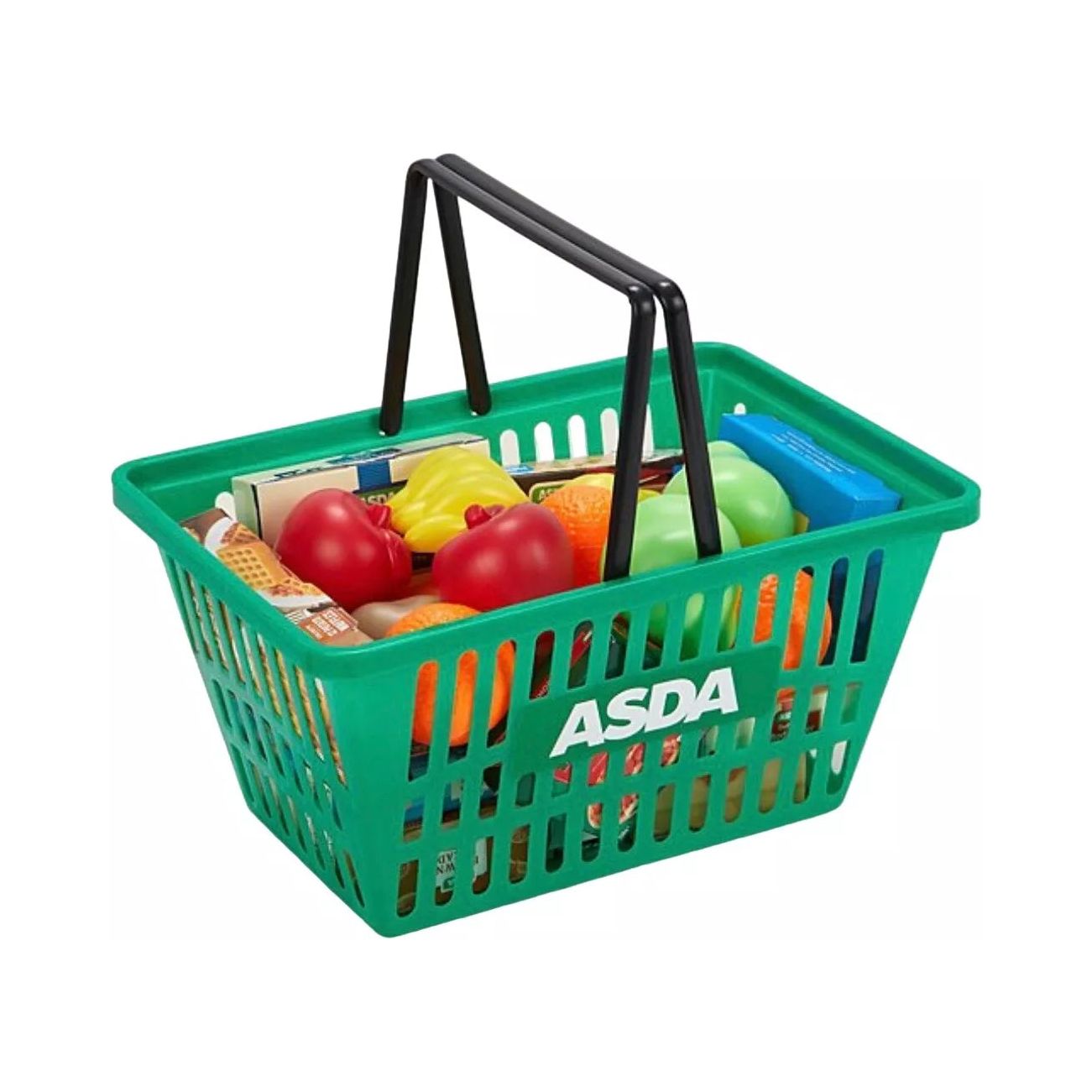 Pretend play ASDA Shopping Basket with pretend grocery food.