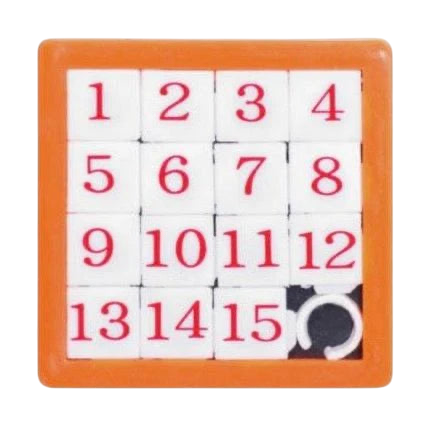 A traditional slide puzzle with the object being to rearrange the tiles in the correct number sequence.